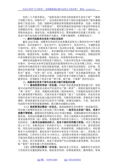 / 关于提升地勘单位党务干部业务能力的调研报告