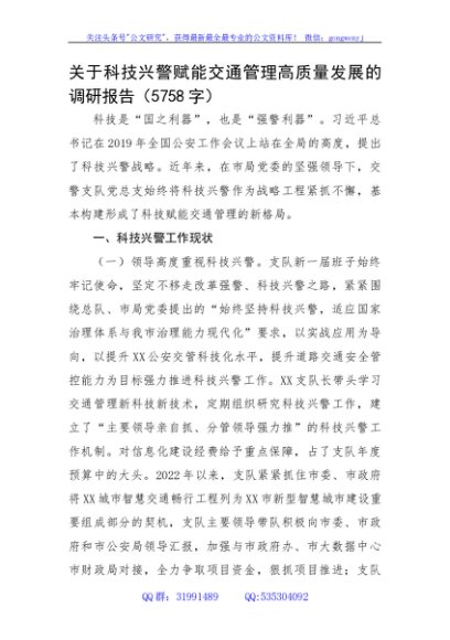 / 关于科技兴警赋能交通管理高质量发展的调研报告