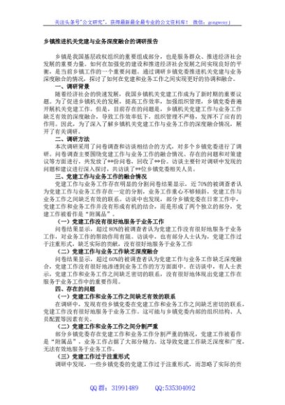 / 乡镇推进机关党建与业务深度融合的调研报告