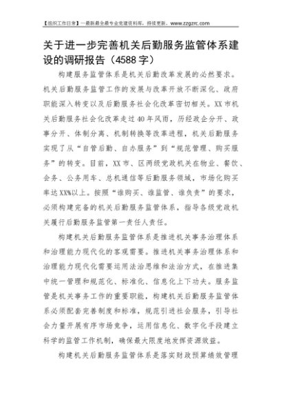 / 关于进一步完善机关后勤服务监管体系建设的调研报告