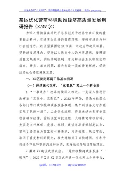 / 优化营商环境助推经济高质量发展调研报告