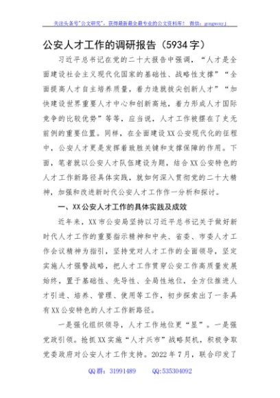 / 公安人才工作的调研报告