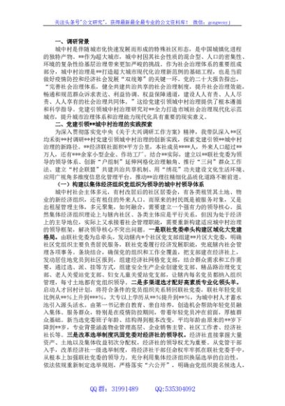 关于党建引领城市基层治理的调研报告