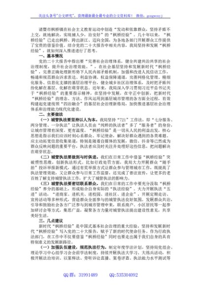 / 关于坚持和发展“枫桥经验”开创城市管理新局面的调研报告