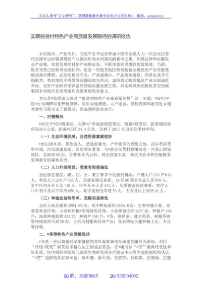 / 实现脱贫村特色产业高质量发展路径的调研报告