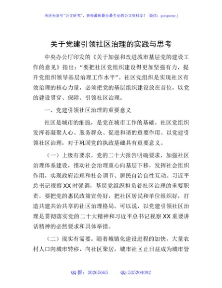 / 党建引领社区治理的实践与思考(调研报告参考)
