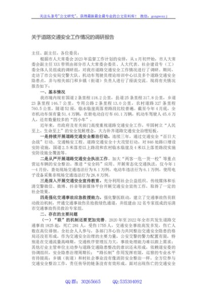/ 关于道路交通安全工作情况的调研报告
