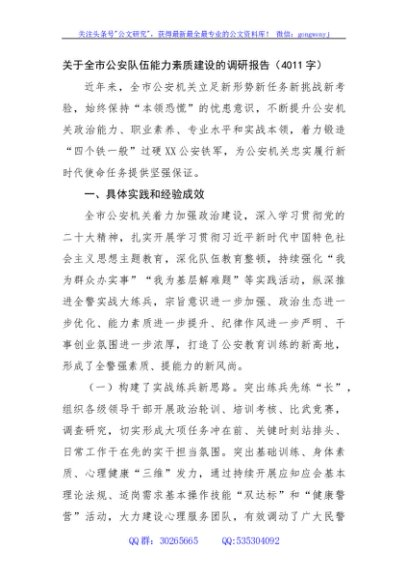 / 关于全市公安队伍能力素质建设的调研报告