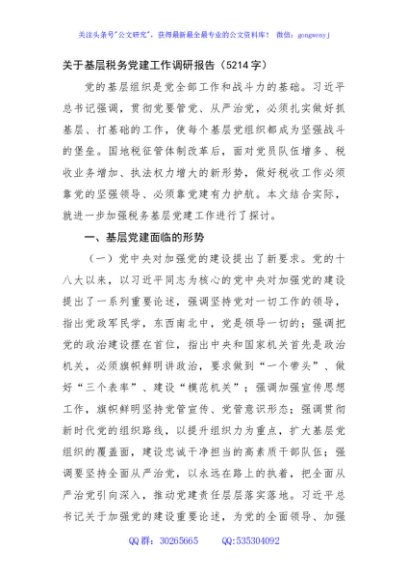 / 关于基层税务党建工作调研报告