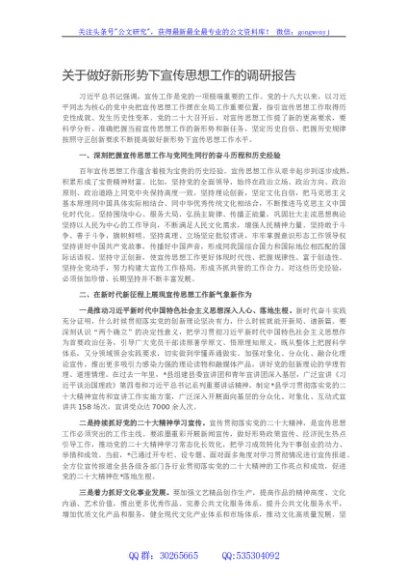 / 关于做好新形势下宣传思想工作的调研报告