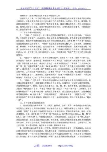 / 调研报告:提高乡村治理水平走好乡村善治之路
