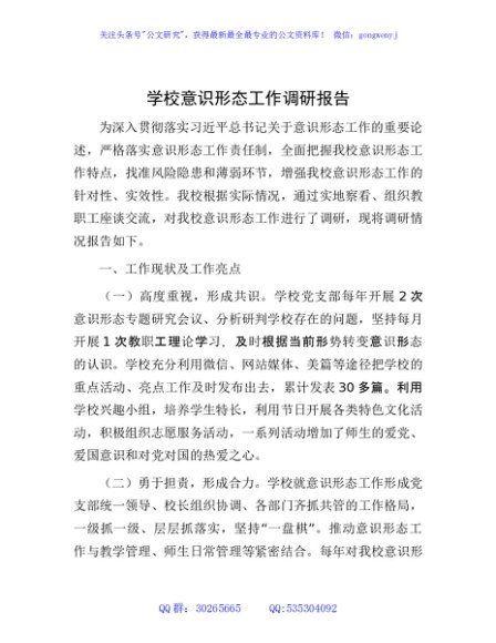 / 学校意识形态工作调研报告