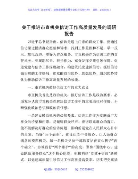 / 推进市直机关信访工作高质量发展的调研报告