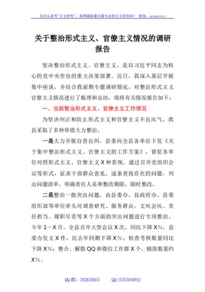 / 关于整治形式主义、官僚主义情况的调研报告