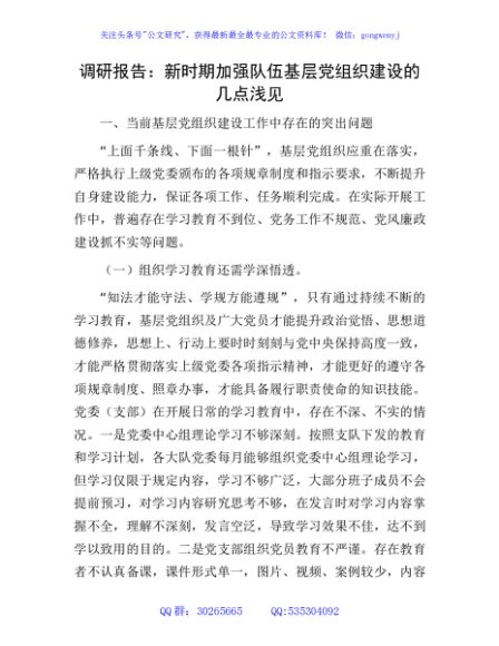 / 调研报告:新时期加强队伍基层党组织建设的几点浅见