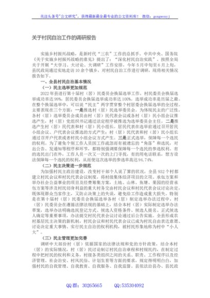 / 关于村民自治工作的调研报告