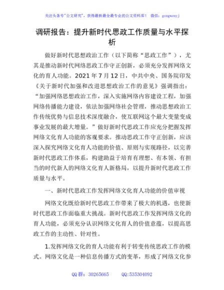 / 调研报告:提升新时代思政工作质量与水平探析