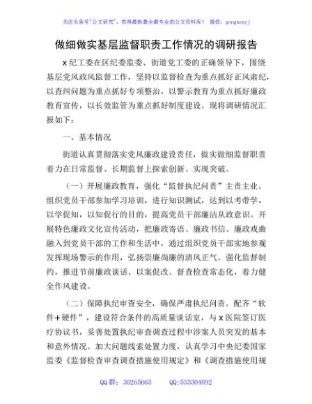 做细做实基层监督职责工作情况的调研报告