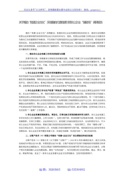 / 关于推动“党建企业文化”深度融合打造党建引领非公企业“强磁场”调研报告