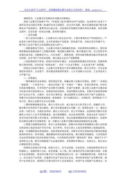 / 调研报告:工业集中区发展存在问题及对策建议