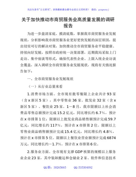 / 加快推动市商贸服务业高质量发展的调研报告