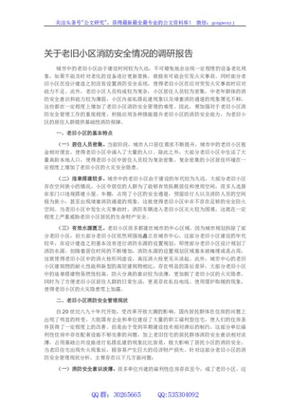 / 关于老旧小区消防安全情况的调研报告