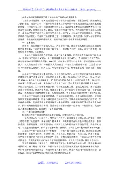 / 关于年轻干部问题现状及建立培养选拔工作机制的调研报告