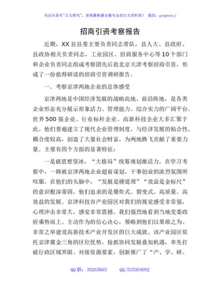 招商引资考察调研报告