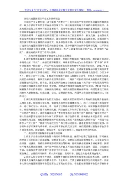 / 高校共青团新媒体平台工作调研报告
