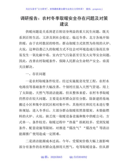 / 调研报告:农村冬季取暖安全存在问题及对策建议