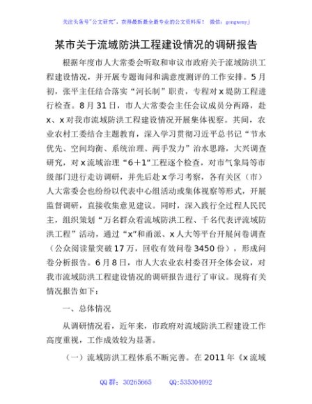 / 市关于流域防洪工程建设情况的调研报告