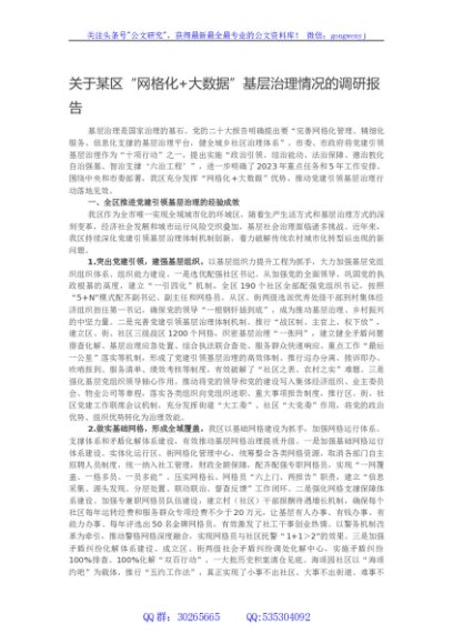 / 关于某区网格化+大数据基层治理情况的调研报告
