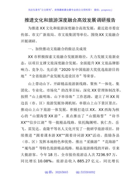 / 推进文化和旅游深度融合高效发展调研报告