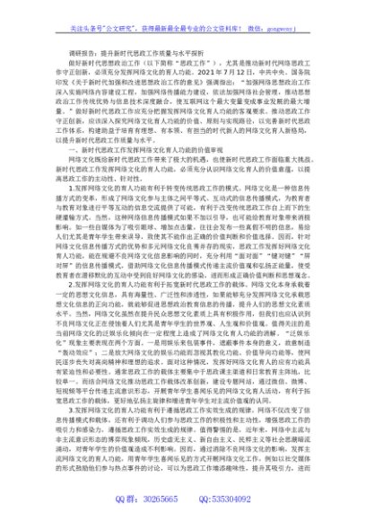 / 调研报告:提升新时代思政工作质量与水平探析