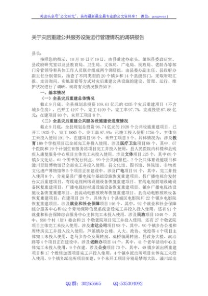 / 关于灾后重建公共服务设施运行管理情况的调研报告