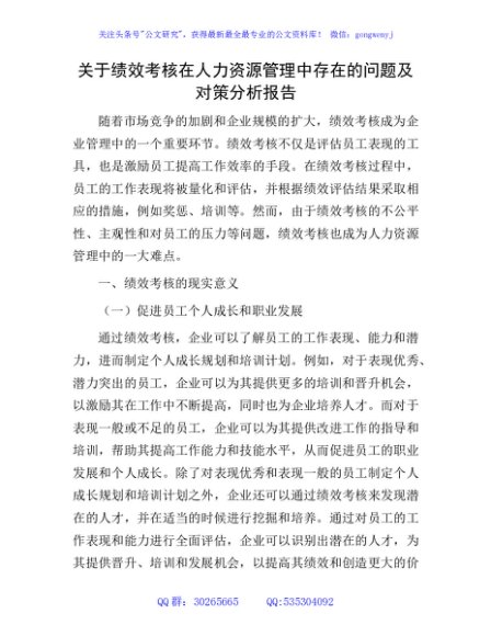 绩效考核在人力资源管理中存在的问题及对策分析报告(调研报告参考)