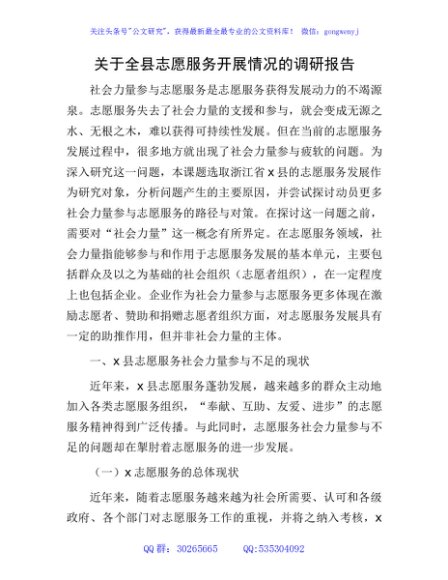 / 全县志愿服务开展情况的调研报告