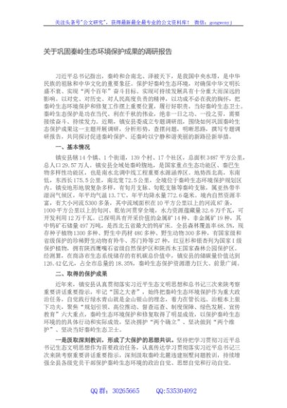/ 关于巩固秦岭生态环境保护成果的调研报告
