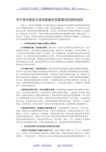 / 关于某市商旅文体深度融合发展情况的调研报告