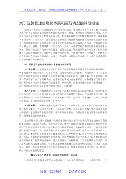 / 关于应急管理信息化体系和运行情况的调研报告