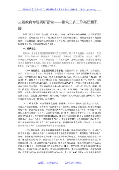 / 主题教育专题调研报告——推动三农工作高质量发展