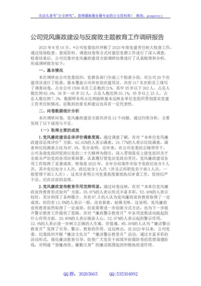 / 公司党风廉政建设与反腐败主题教育工作调研报告