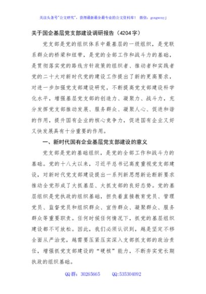 / 关于国企基层党支部建设调研报告