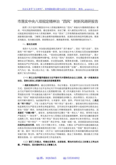 / 市落实中央八项规定精神治四风树新风调研报告