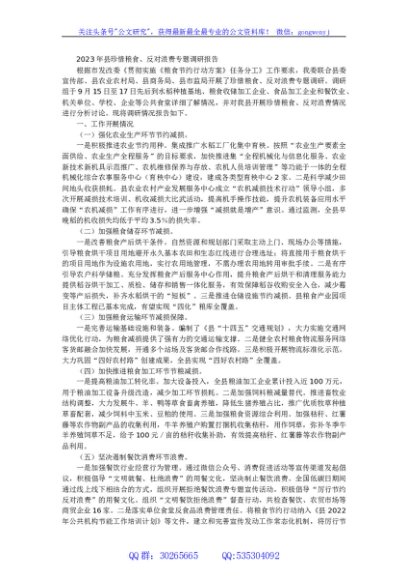 / 2023年县珍惜粮食、反对浪费专题调研报告