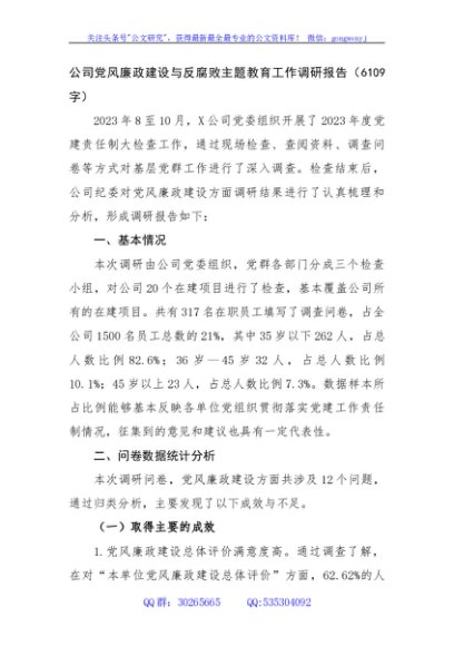 / 国企党风廉政建设与反腐败主题教育工作调研报告