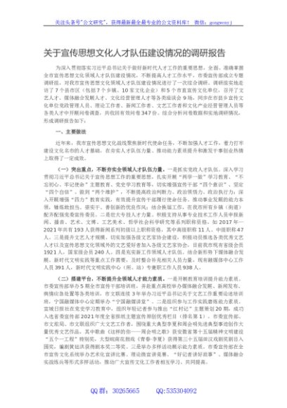 / 关于宣传思想文化人才队伍建设情况的调研报告