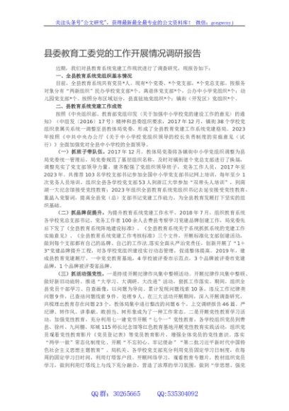 / 县委教育工委党的工作开展情况调研报告