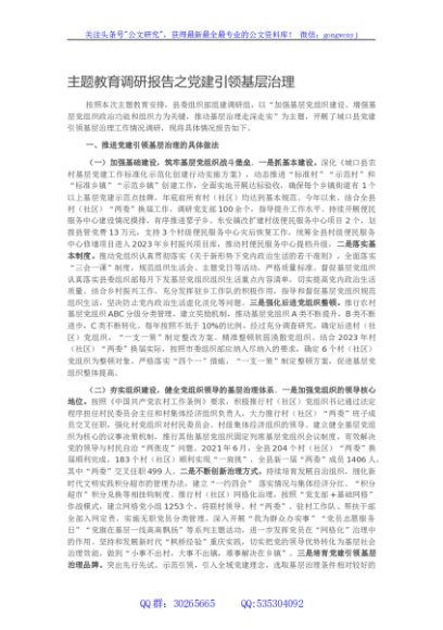 / 主题教育调研报告之党建引领基层治理