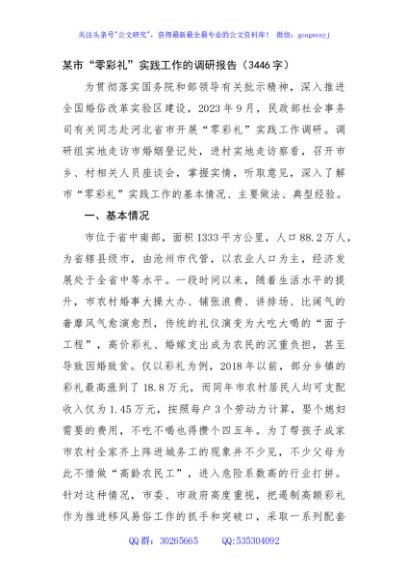 / 某市“零彩礼”实践工作的调研报告